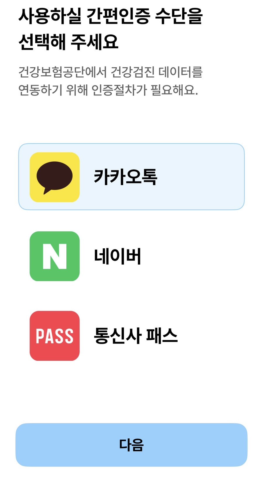 카카오톡, 네이버, 통신사 PASS 중 선택 가능해서