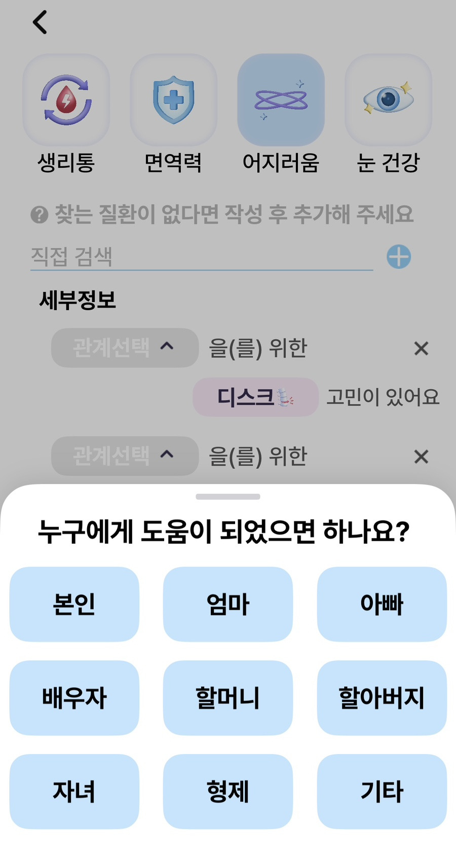 ‘디스크’, ‘저혈압’, ‘자궁경부암’, ‘어지러움’ 등