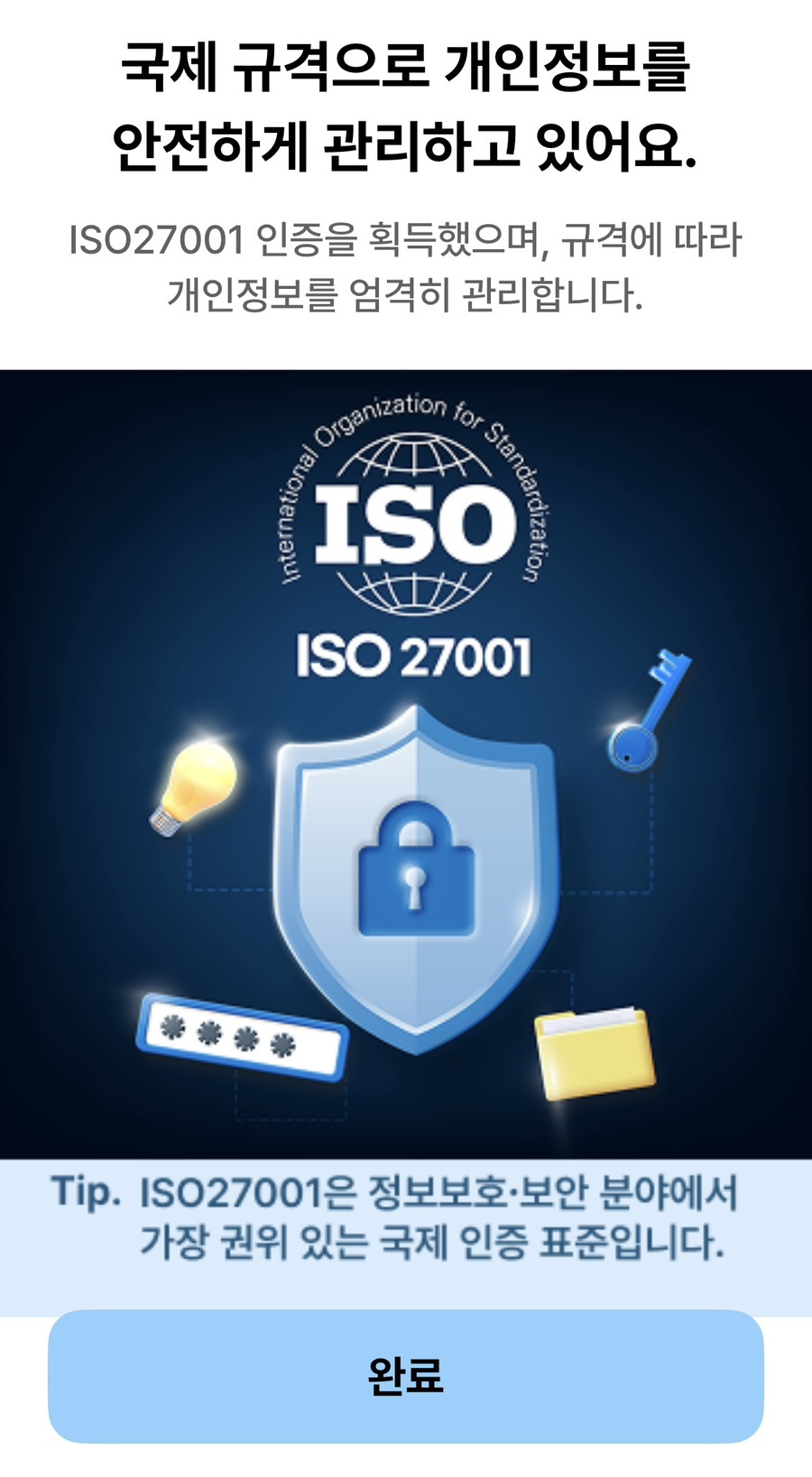 이 어플은 ISO27001 국제규격 정보보호 인증도 받았대요!