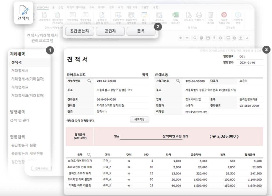견적서만 쓰는 게 아니라 실제 납품/거래가 이루어지면