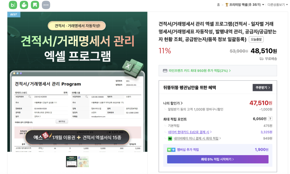 이번에는 예스폼 스마트스토어에서 “견적서/거래명세서 관리 엑셀 프로그램”을 직접 써보고 솔직 후기 남겨볼게요!