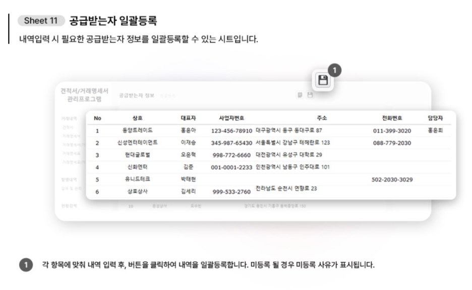 ▶ 공급받는자 정보 일괄등록 / 품목정보 일괄등록