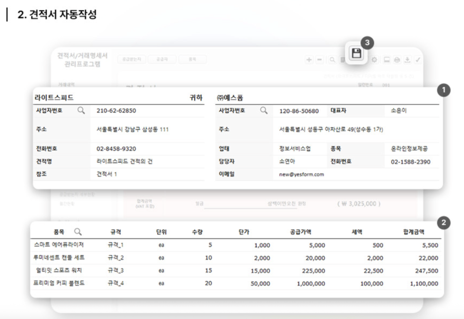 ③ 견적서 작성은 “입력 → 자동정리” 느낌
