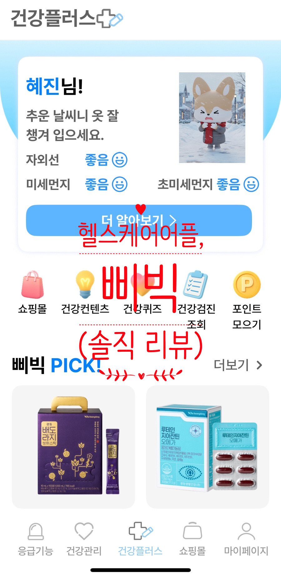 생활 밀착형 헬스케어어플 삐빅이라는 느낌이 들었어요!