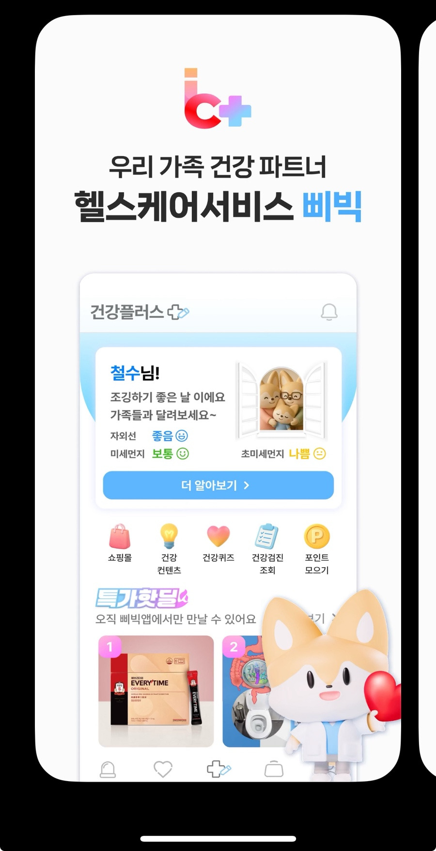 우리 가족 건강 파트너, 헬스케어어플 삐빅이라는 문구가 딱 맞는 느낌 😊
