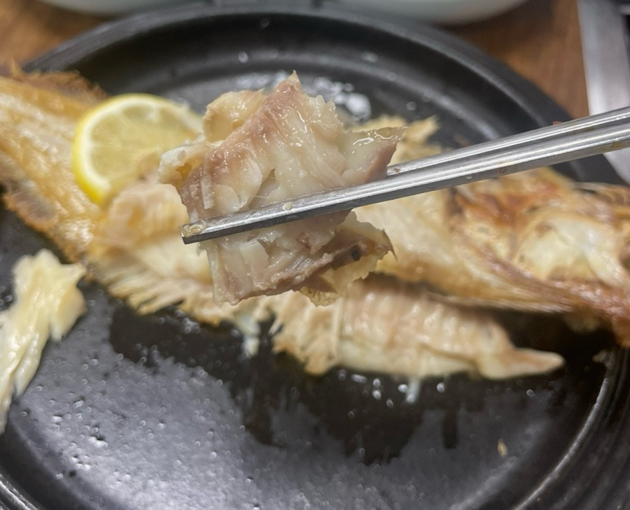 모둠한상에 빠질 수 없는 생선구이! 🐟 겉은 바삭하고 속은 촉촉하게 아주 잘 구워졌어요. 같이 나온 레몬즙을 살짝 뿌려주면 비린내 없이 아주 깔끔하게 즐길 수 있답니다. 고기랑 생선을 한 번에 즐길 수 있다니, 구성이 정말 알차죠? 👏