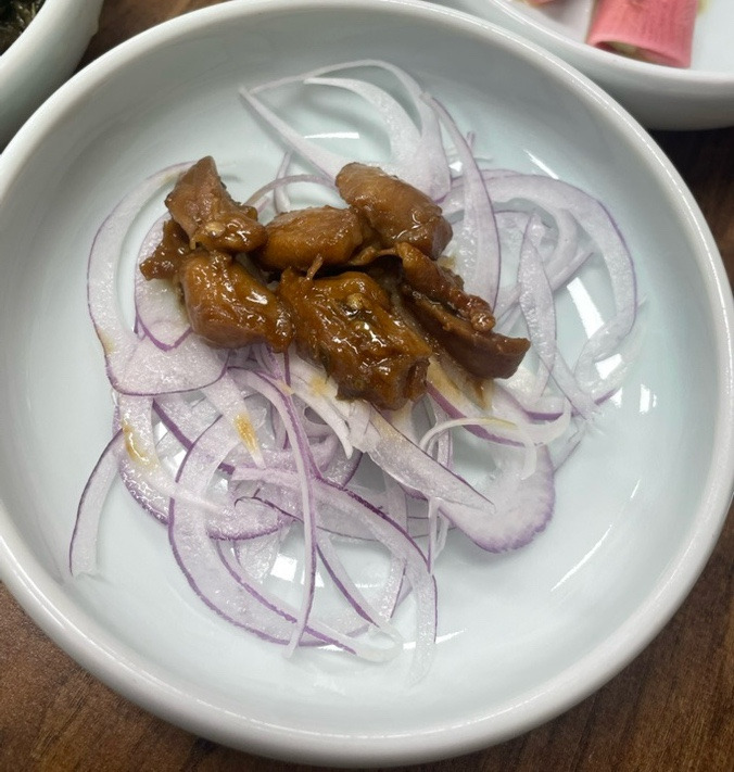 불향이 은은하게 나면서 매콤달콤한 양념이 고기에 쏙쏙 잘 배어 있더라고요. 아삭한 양파랑 같이 먹으면 그야말로 꿀맛! 😋