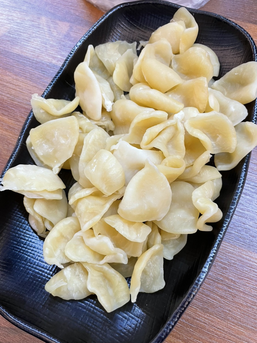 감자탕에 빠질 수 없는 단짝, 수제비 사리도 투하! ✨ 저희는 직접 뜯어 넣는 수제비를 선택했는데, 요게 또 만드는 재미가 있잖아요? 쫀득함이 남다른 비주얼입니다.