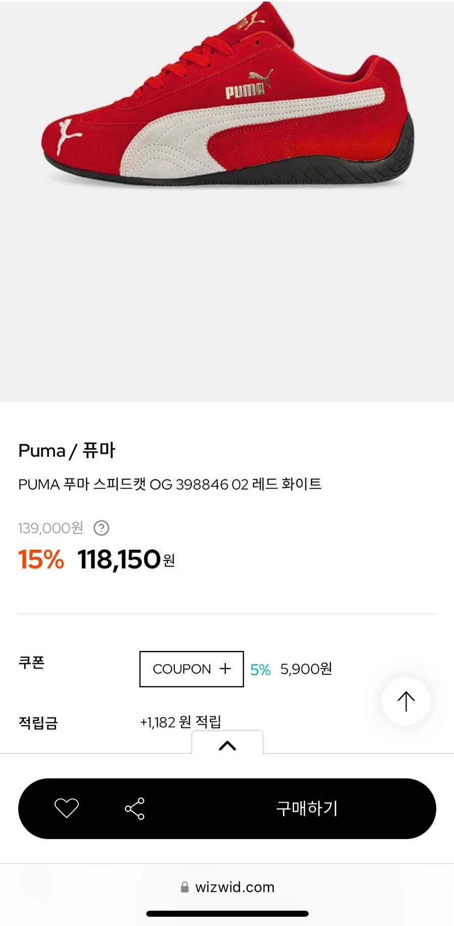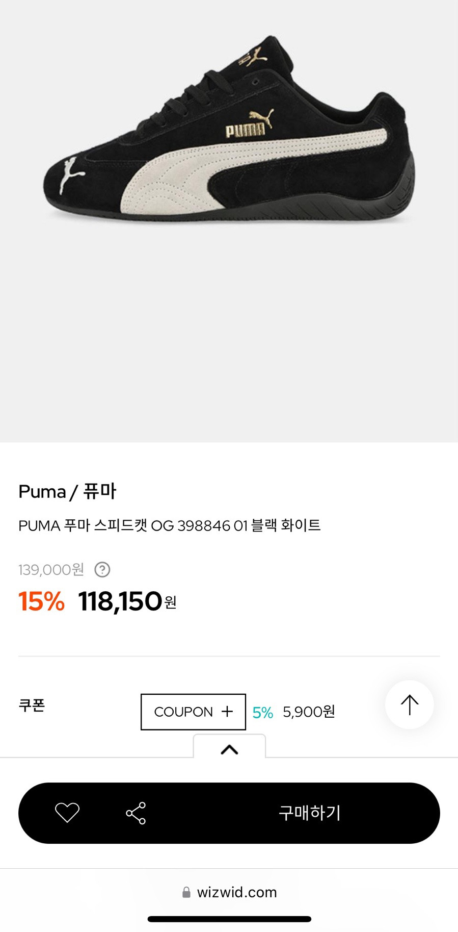 푸마 스피드캣 OG, 위즈위드에서는 무려 15% 할인 중이에요!!