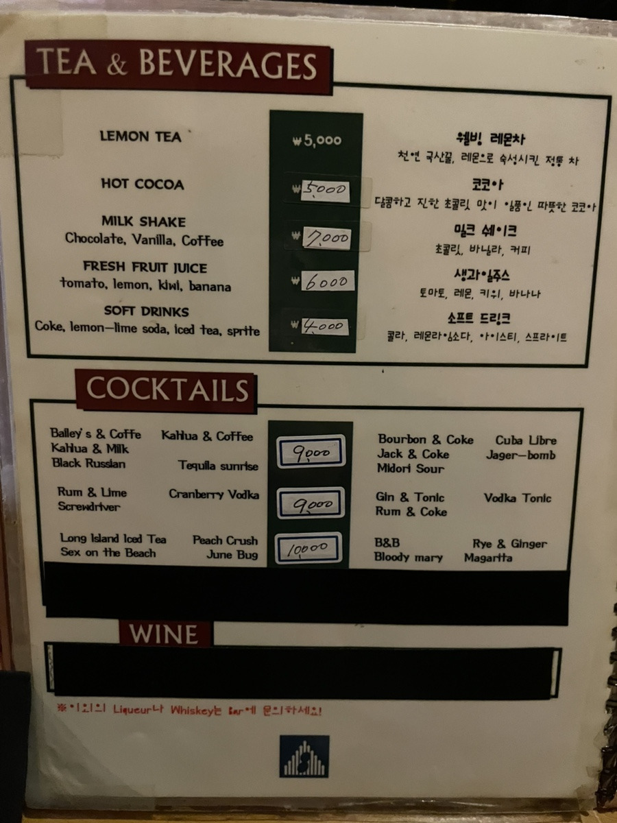 - 주방은12시 종료(음식 라스트 오더 : 11시 30분)