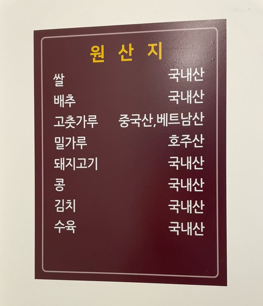 (쌀, 배추, 콩, 돼지고기, 김치, 수육 모두 국내산)