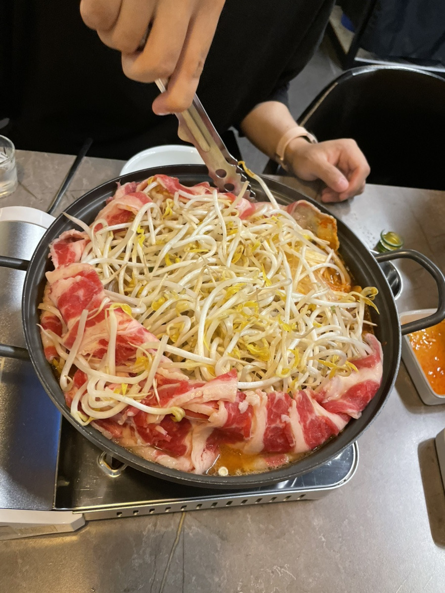 고기 아래에는 숙주가 듬뿍 깔려 있고,