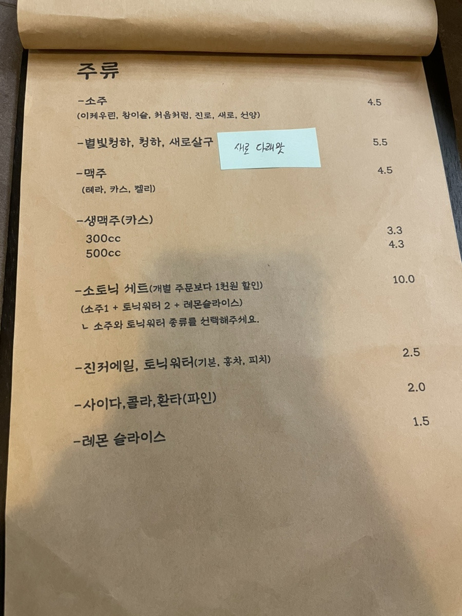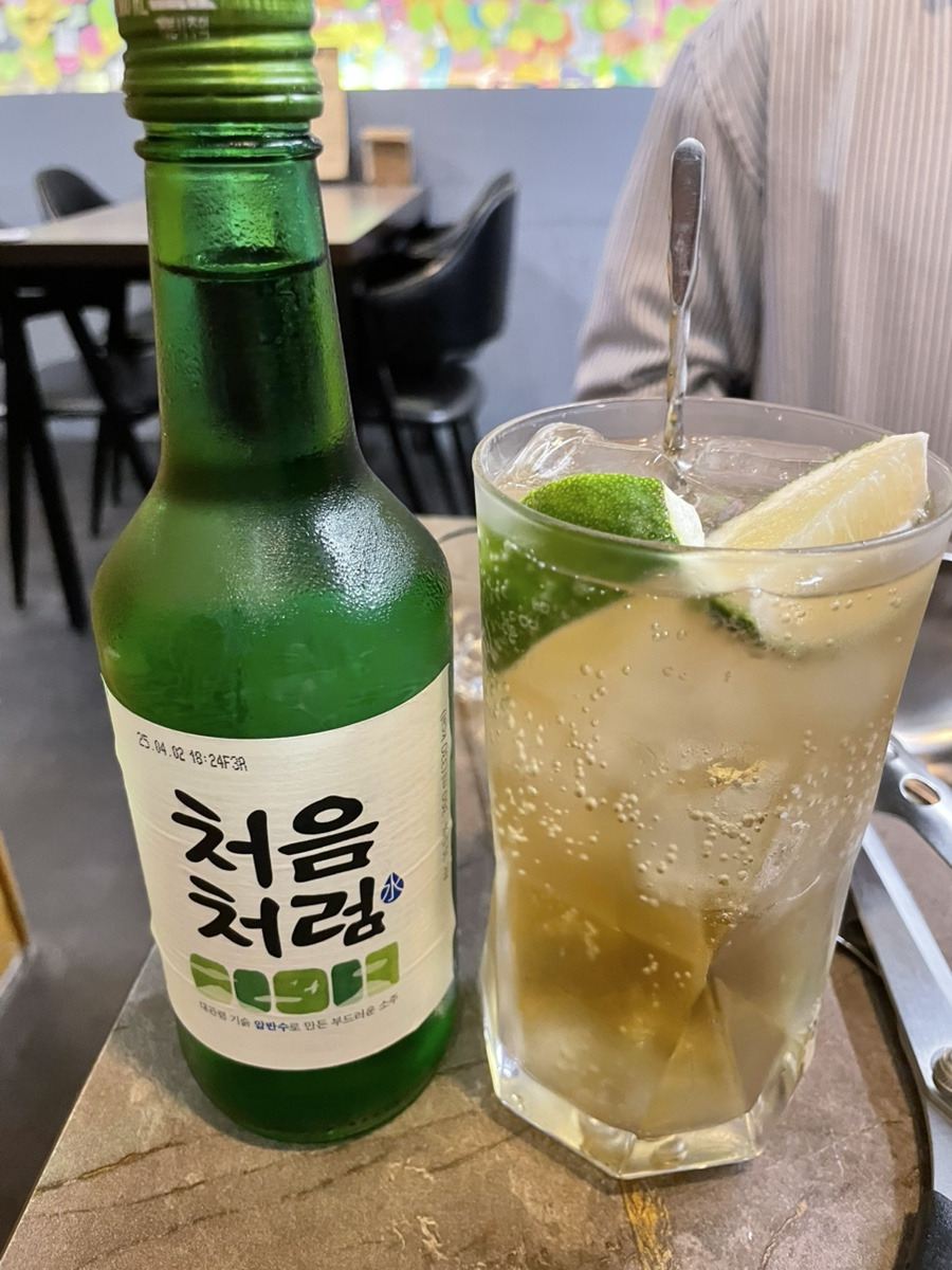 저희는 처음처럼 소주랑 사과 하이볼을 시켰어요.