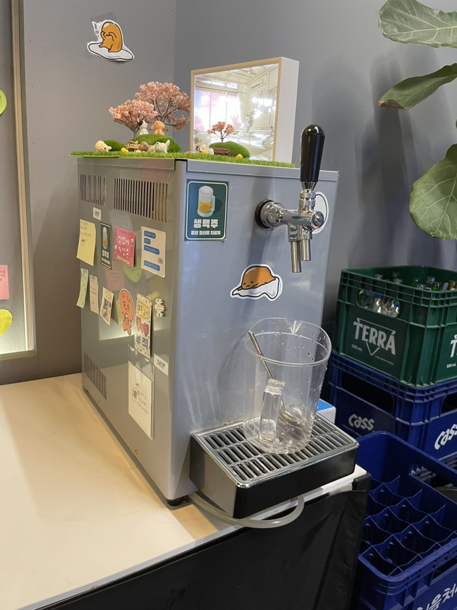 매장 한쪽에는 이렇게 생맥주 기계도 준비되어 있었어요!