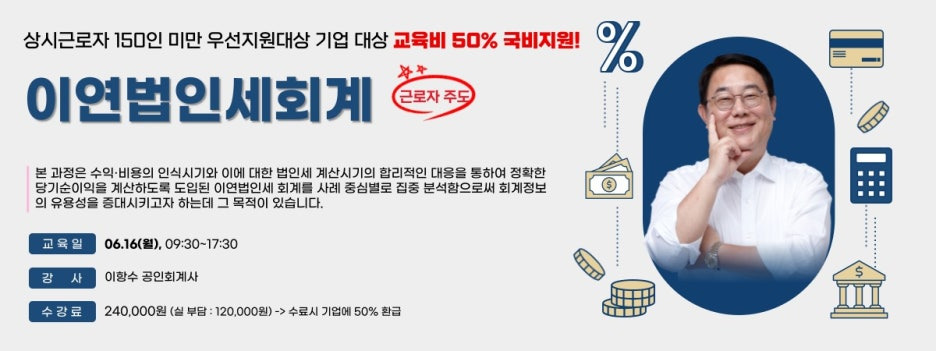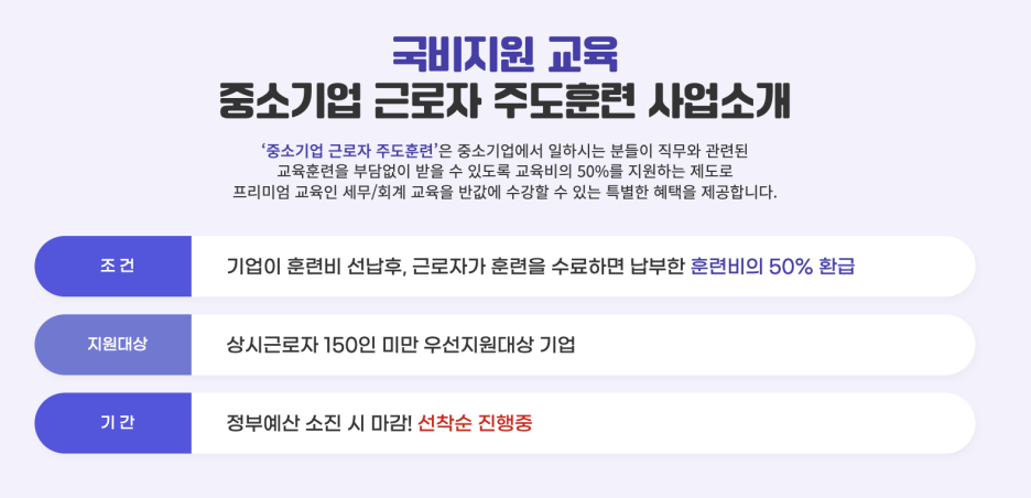 #중소기업근로자주도훈련 #세무교육 #회계 교육 #세무강의 #회계강의 #국비지원 #50%환급 #환급과정 #직업훈련 #재직자직업훈련