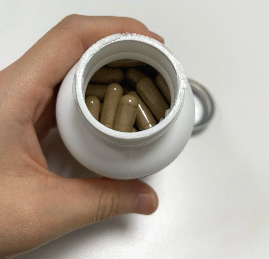 뚜껑을 열면 안에는 갈색빛 식물성 캡슐이 들어있어요!