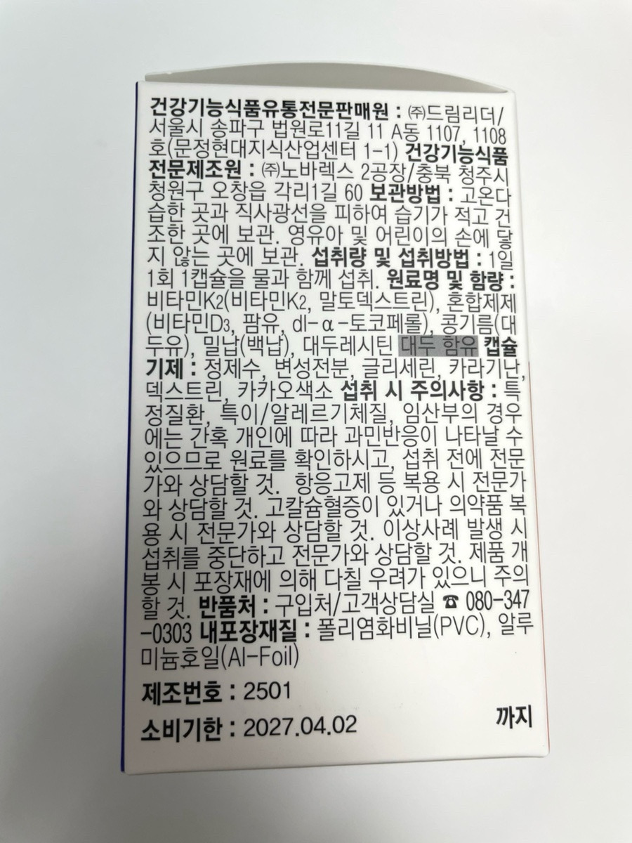 ✔️ 프리미엄 원료 사용 (스위스산 D3 / 트랜스 MK-7)
