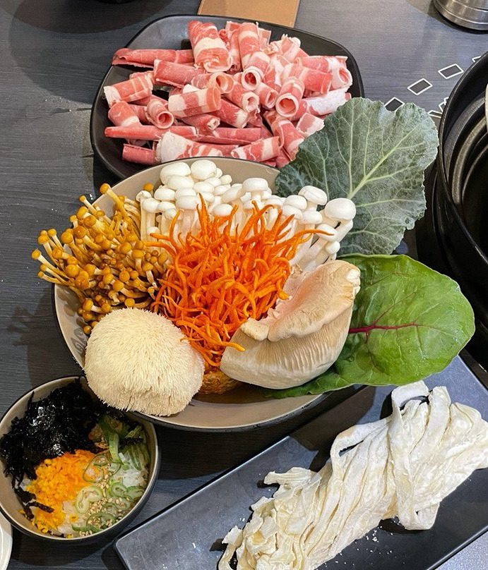 육수에 버섯과 채소들을 푹~ 넣고 샤브샤브 고기까지 더하니 국물 맛이 한층 더 깊어졌어요. 🫕💨